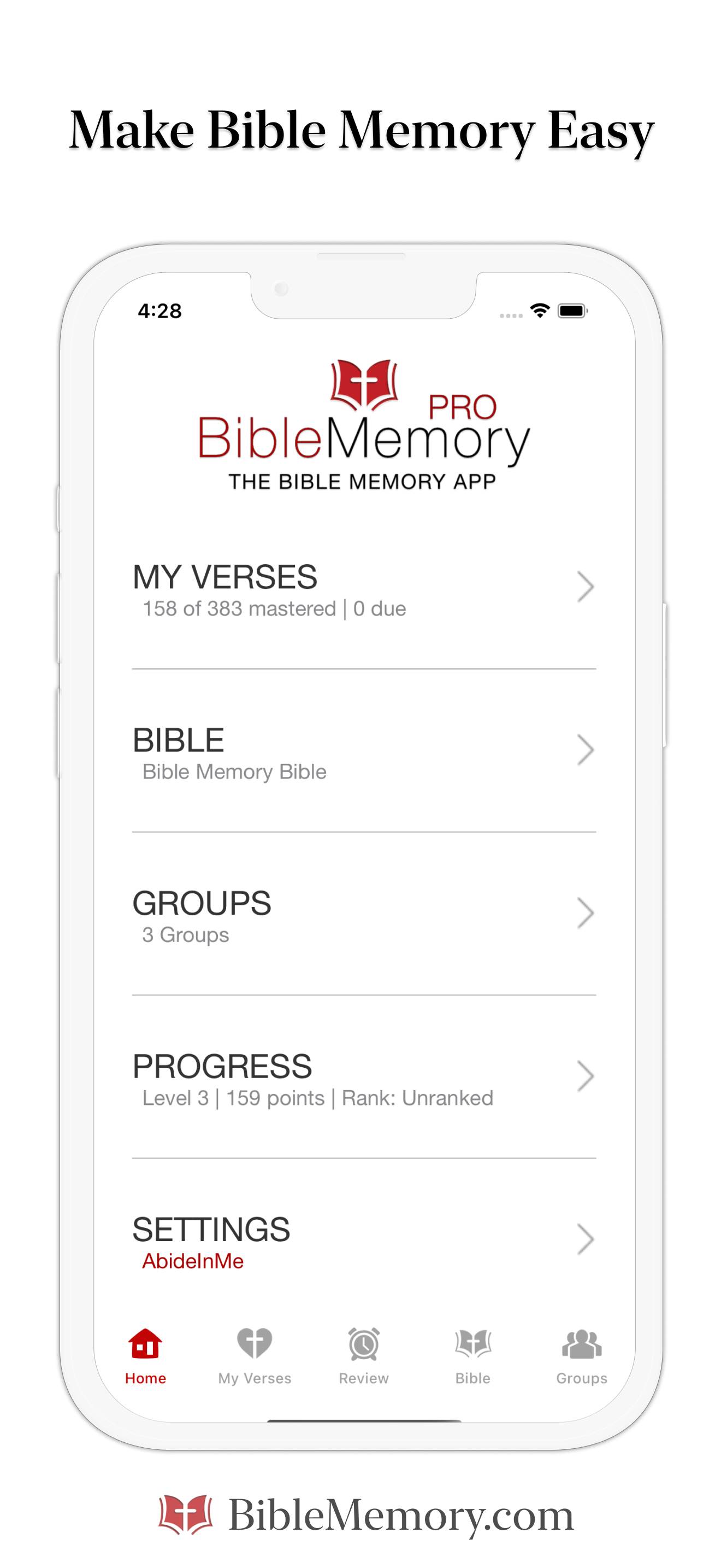 Bible Memory uses a proven, 3-step system, combined with spaced repetition, to ensure long-term retention. Our unique heat map feature shows exactly where you struggle, while our typing method engages muscle memory. With over 2 million users and 30 million+ verses memorized, we're the most trusted and most popular Scripture memory platform.